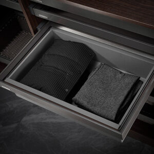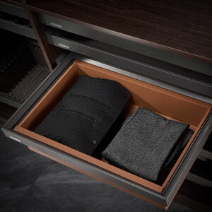 سبد چرمی ریلی داخل کمد لباس رنگ طوسی نارنجی فرنچ استایل سایز 90فانتونی کد J936