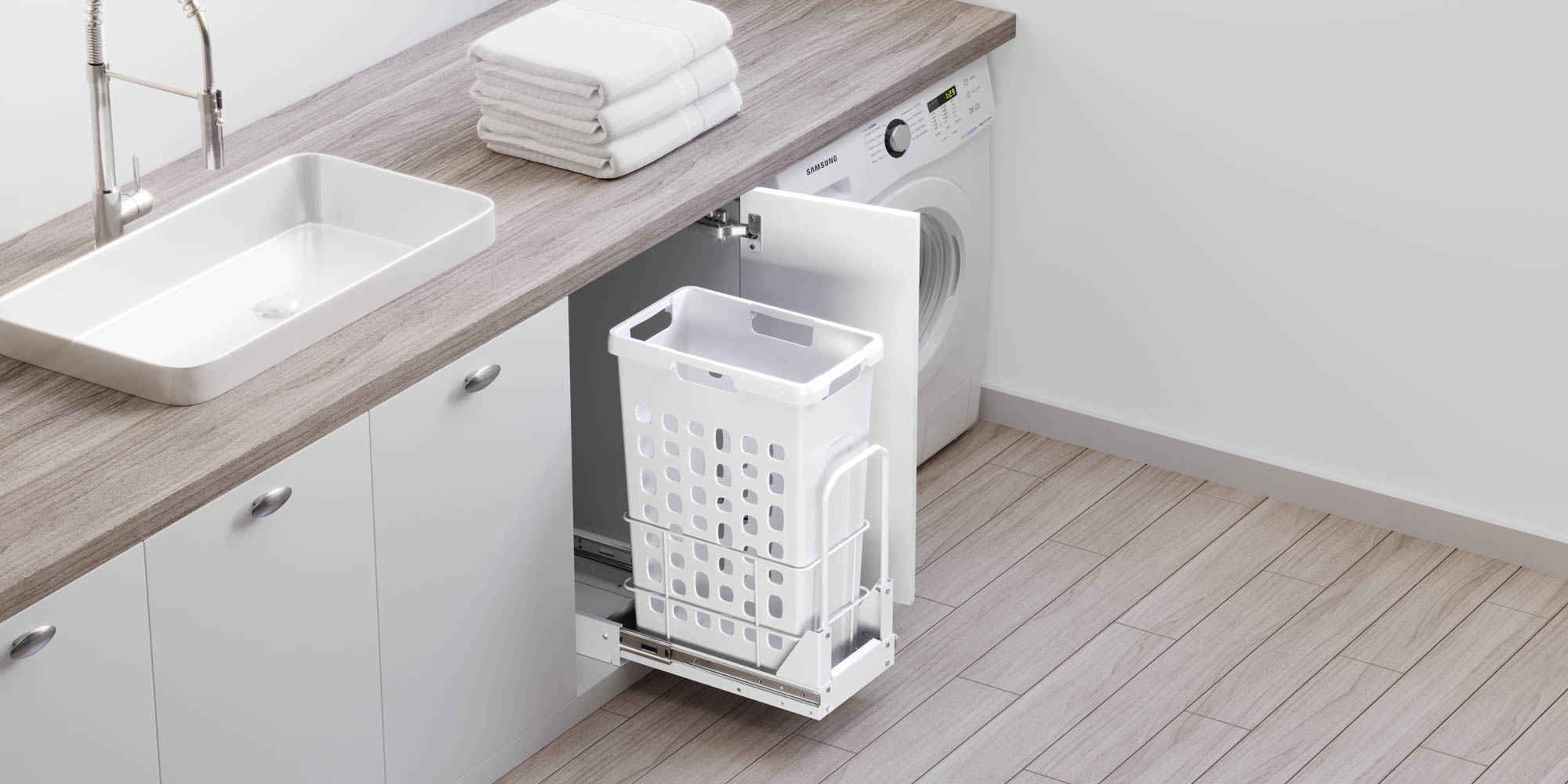 سبد البسه چرک کف ریل آرام بند با قابلیت نصب روی درب ملونی کد 9154