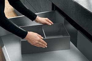 کشوهای باریک با چندین گزینه رنگ LEGRABOX دارای خطوط ظریف و زیبایی است که می توانید آنها را با مواد مختلف مانند استنلس استیل، خاکستری اوریون یا سفید ساتن ترکیب یا مطابقت دهید. همچنین می توانید جلوی چوبی سفارشی خود را اضافه کنید تا ظاهر آن را مطابق با سلیقه خود تغییر دهید. این کشوها به راحتی تمیز می شوند و دارای کشوهای کشویی کامل هستند که امکان دسترسی آسان و دید کامل به اقلام ذخیره شده را فراهم می کنند.